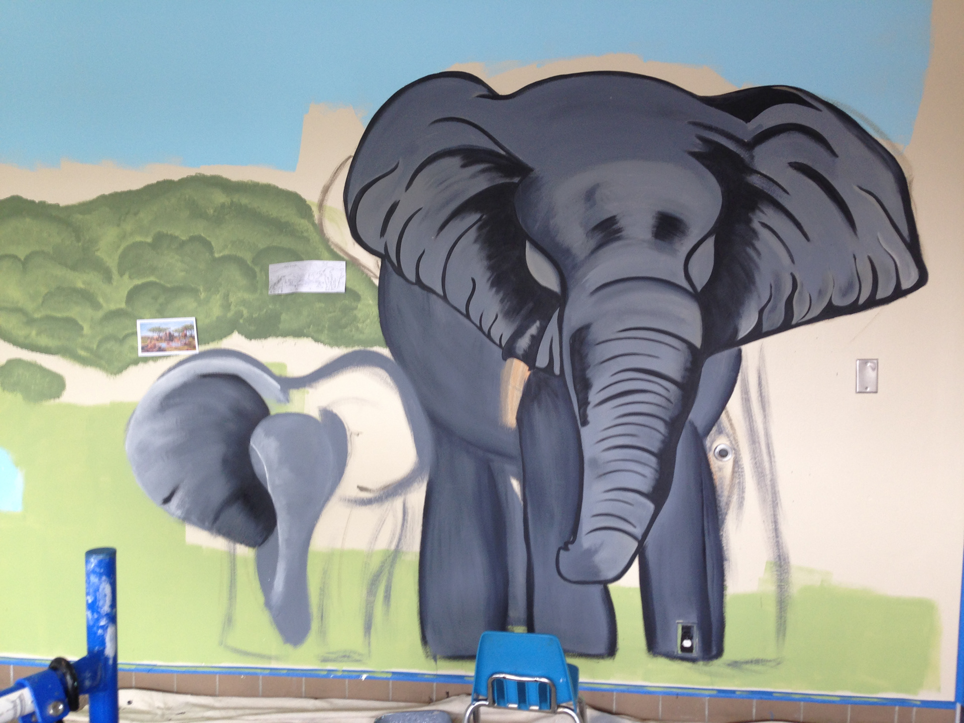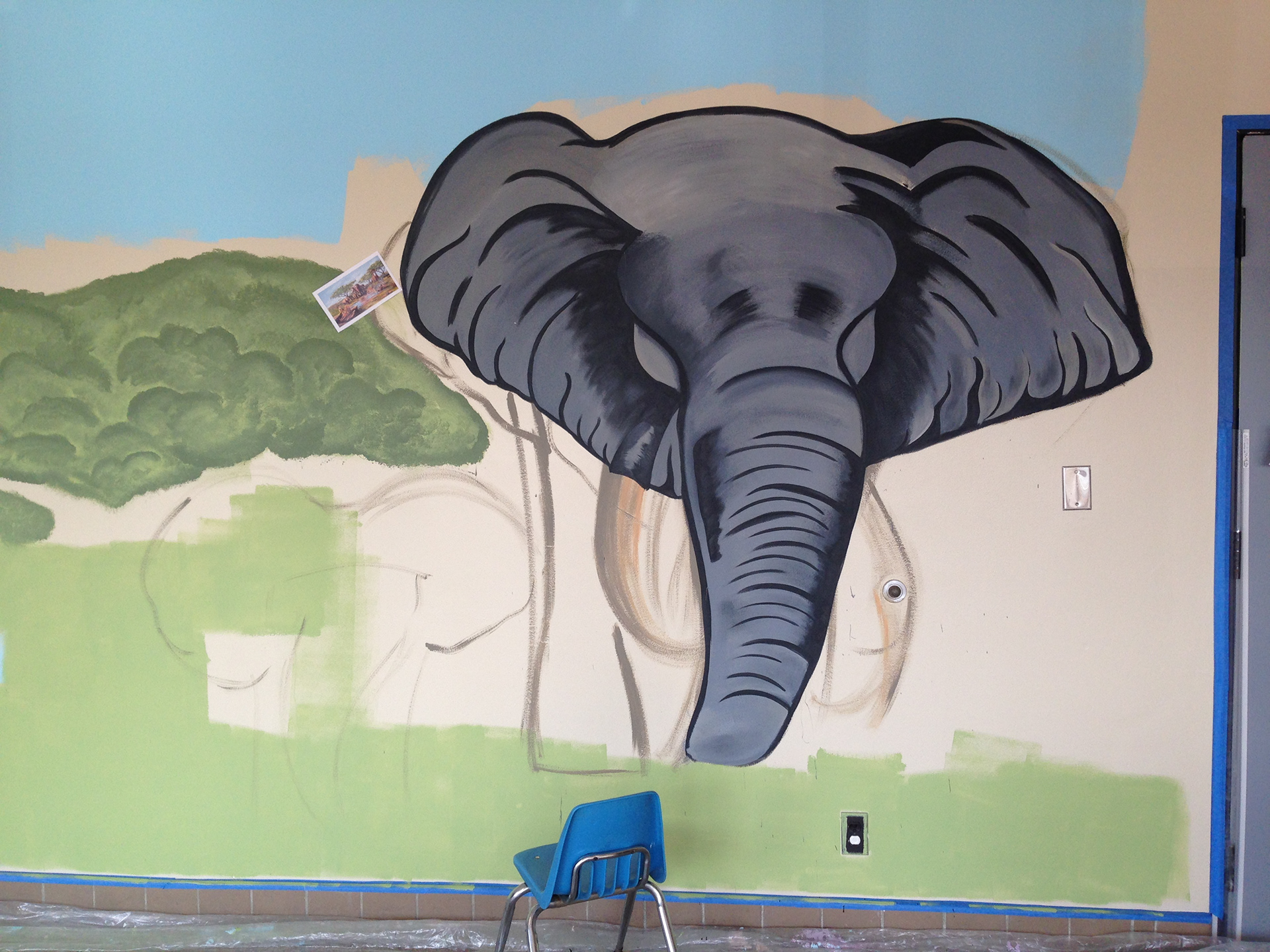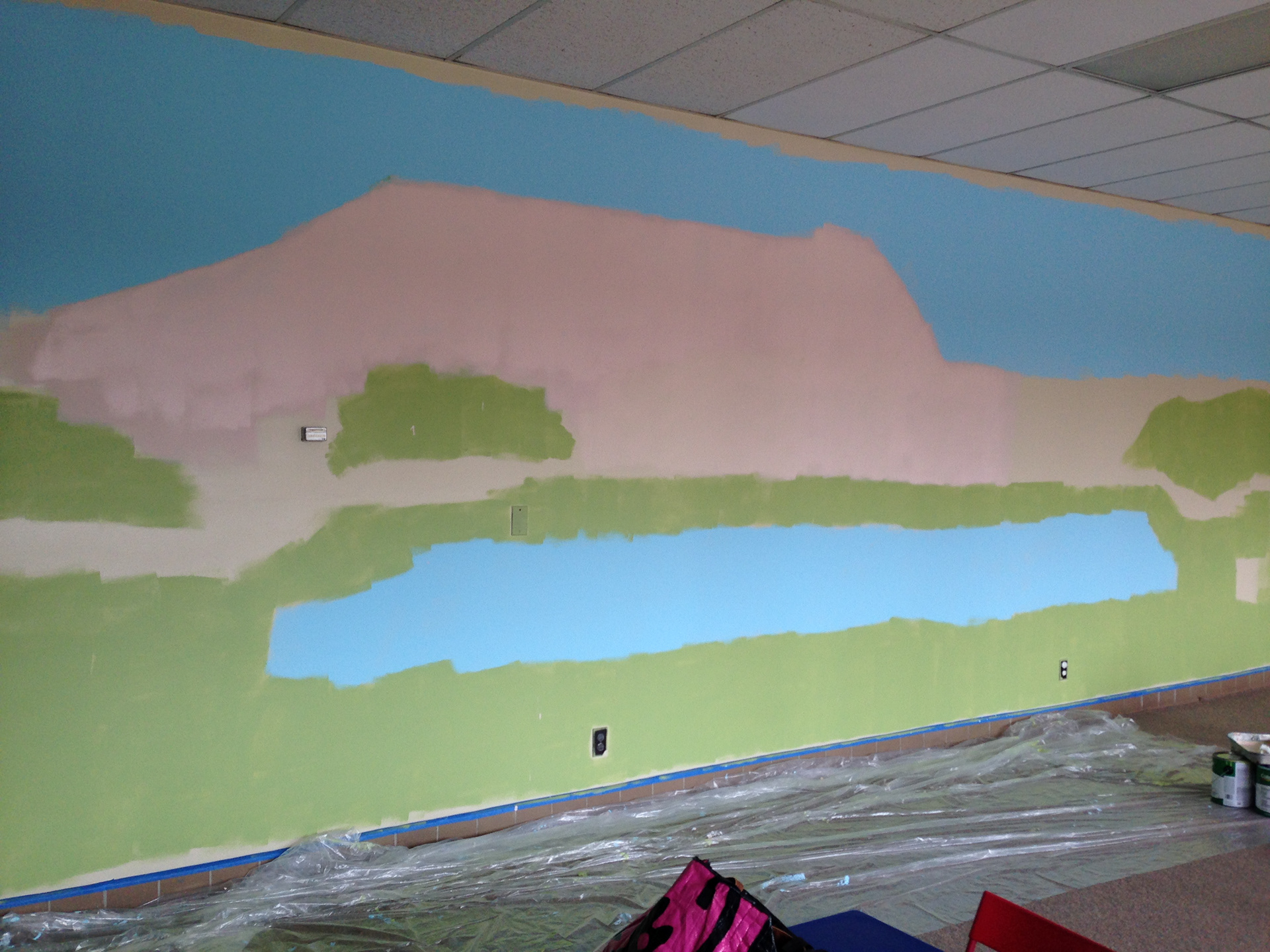 This mural, 40 feet in length and 11 feet in height, was the first mural done under my current business, Courtney's Marvelous Murals, after returning home from Africa. The whimsical whirls and colors make for a perfect nursery setting; the palette not too stimulating but not at all boring.