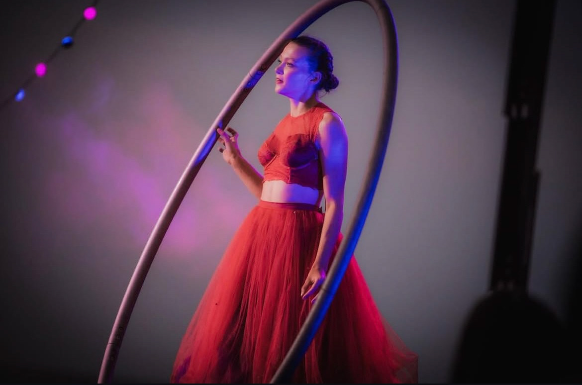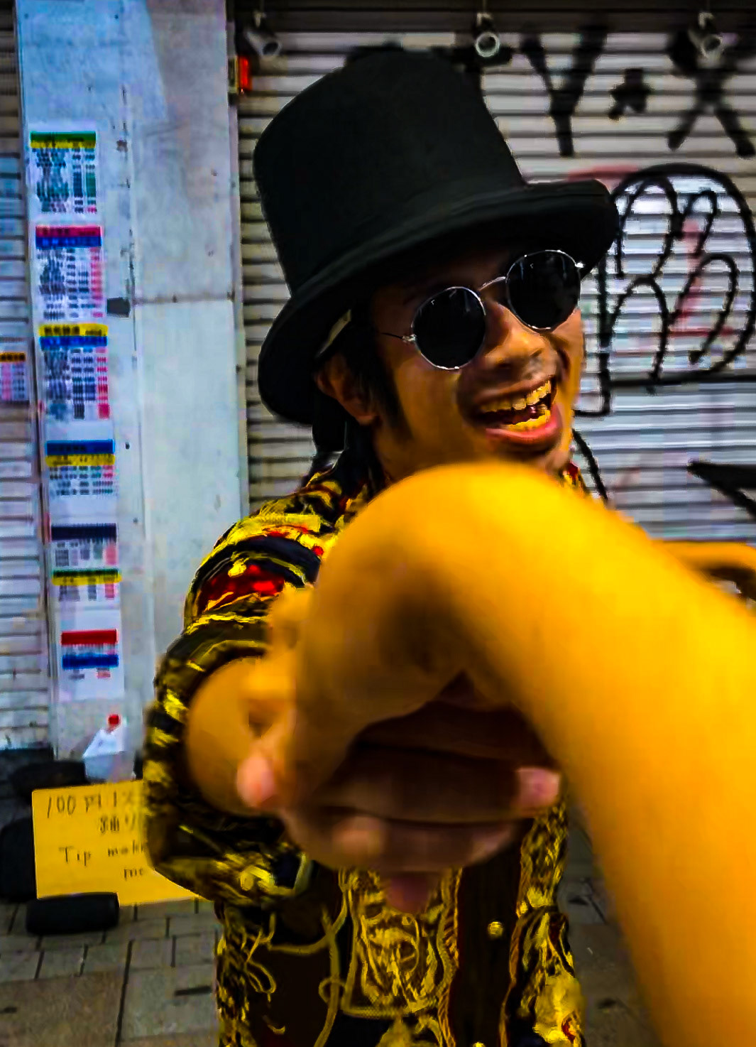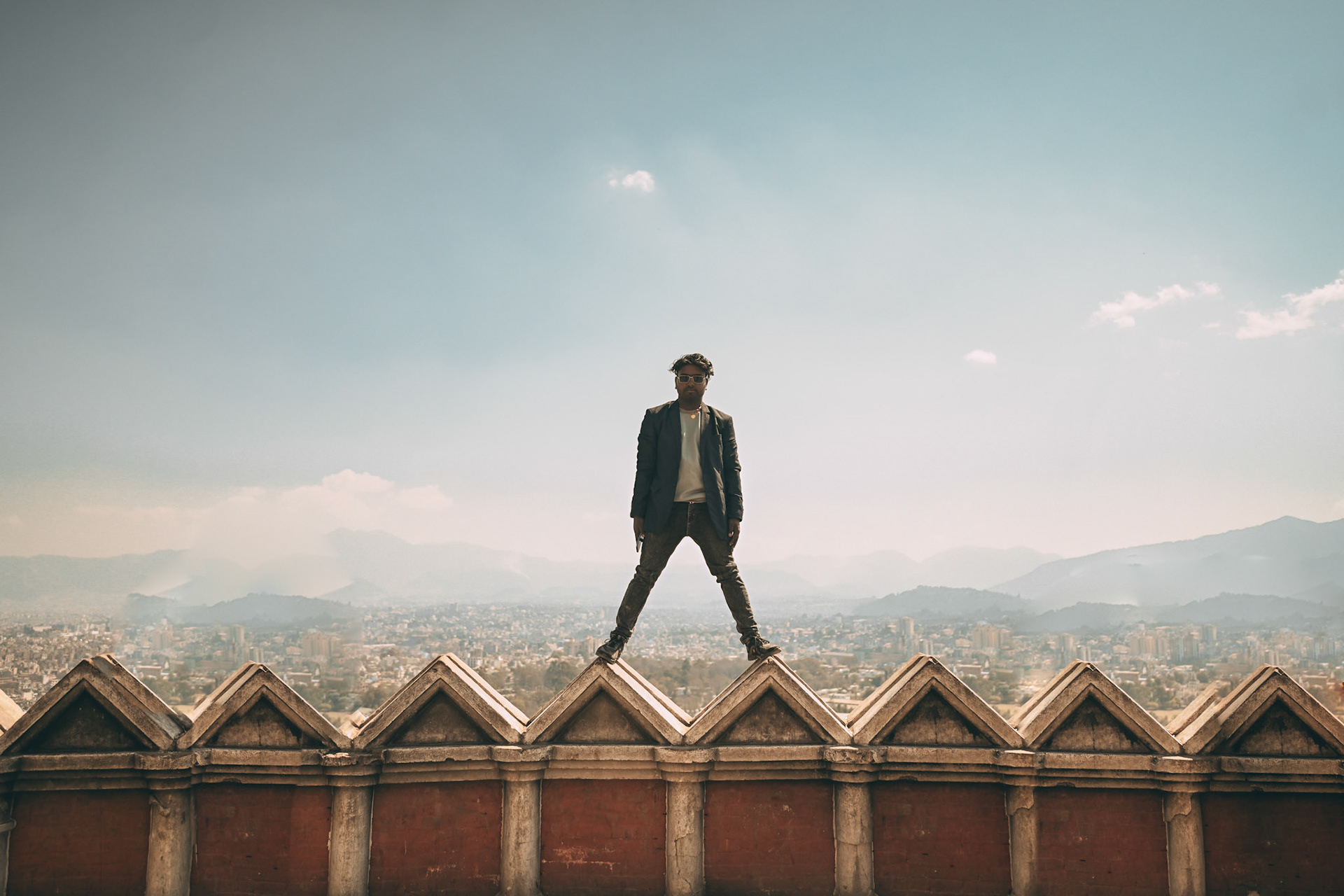 stepping in front of the camera.