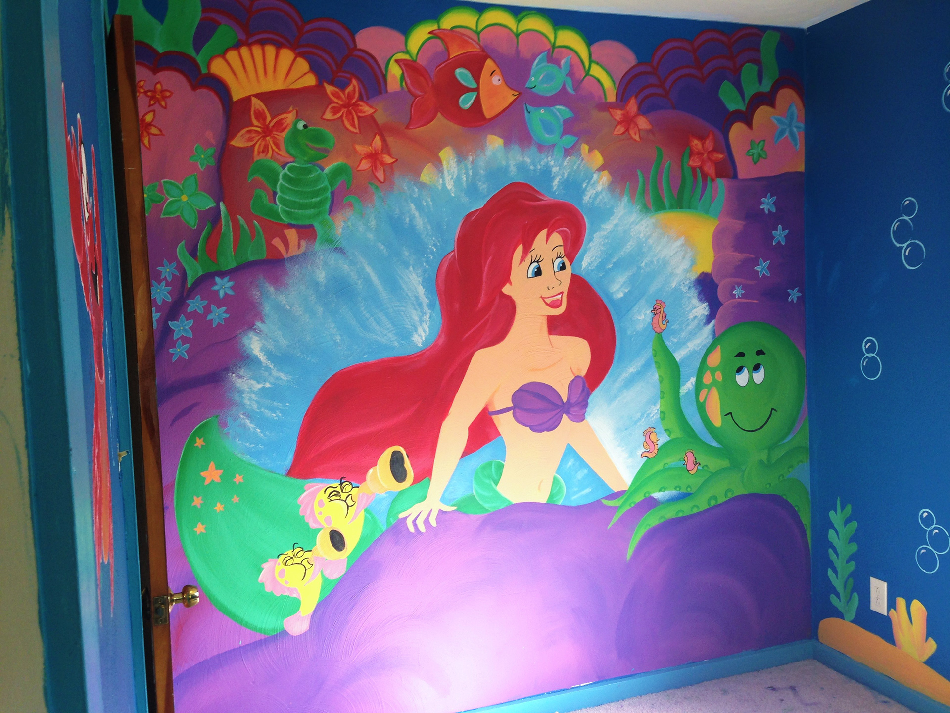 This project was a blast! Although I had the "Under the Sea" theme stuck in my head the entire time, I had a great time constructing all of the elements that made this room what it is. As iconic as a character as Ariel is, I am thrilled that I did so well painting her!